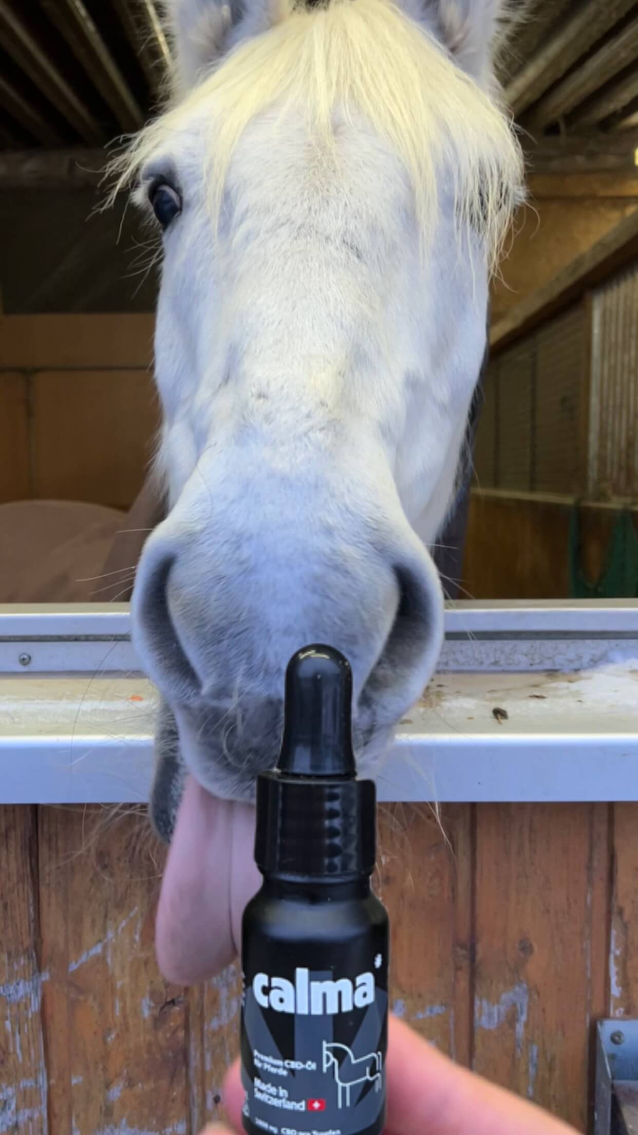 Schüttle das CBD Fläschchen vor jedem Gebrauch sanft hin und her. CBD Öl kann direkt ins Maul des Pferdes getropft oder dem Futter beigemischt werden.