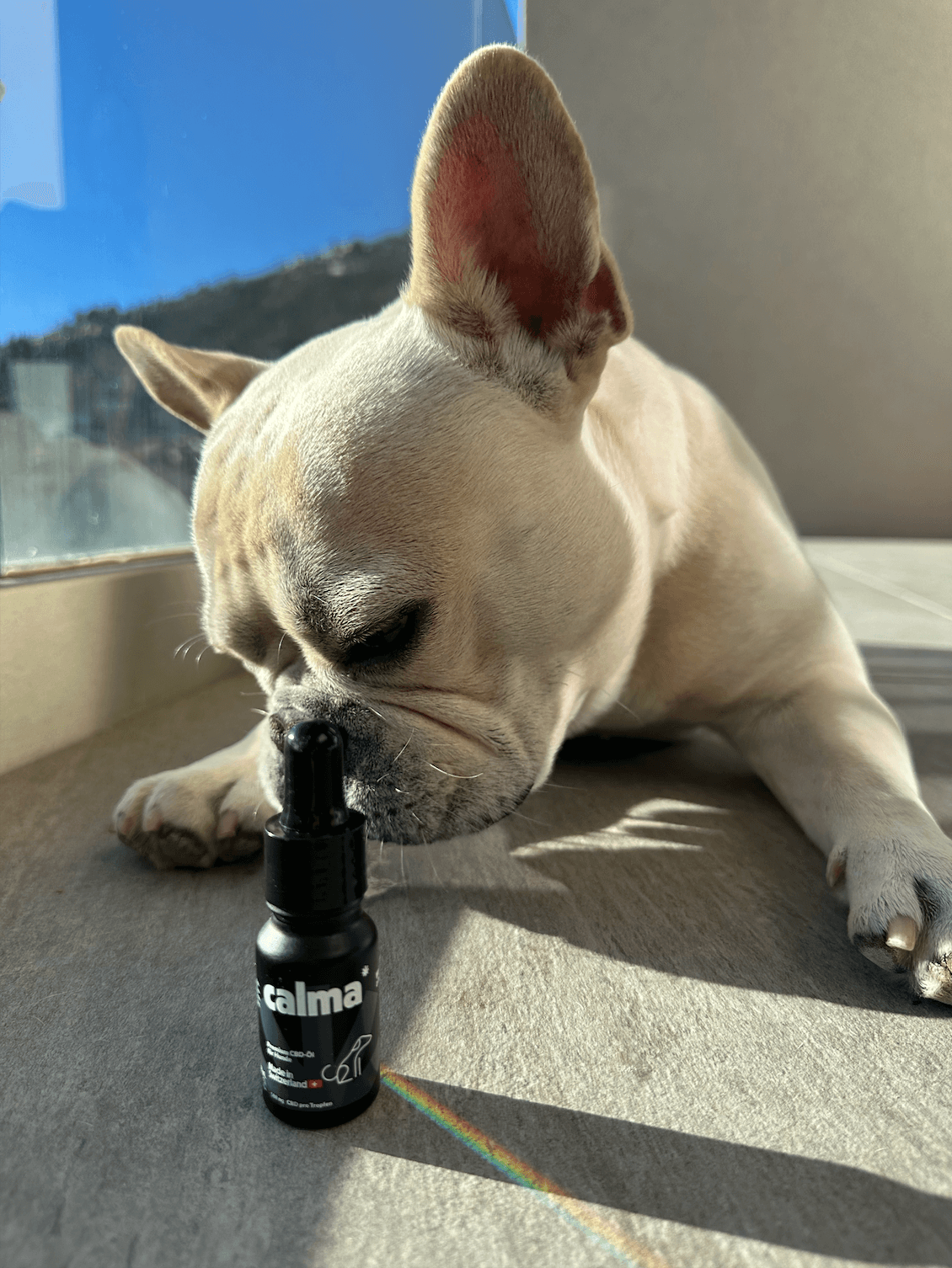 Hunde leiden sehr oft unter Ängsten, Unsicherheiten und Stress. Schon Kleinigkeiten wie ungewohnte Geräusche, eine neue Umgebung, eine Autofahrt oder das Alleinbleiben versetzen unsere Vierbeiner häufig in Unruhe. Vor allem älteren Hunde haben oftmals aufgrund von Krankheiten wie Arthrose chronischen Schmerzen und verlieren somit einen großen Teil ihrer Lebensqualität. Häufig führt das zu einem Bewegungs- und Appetitverlust. Mit dem regulativen Eigenschaften kann das CBD Öl für Hunde von CALMA auf natürliche Weise nachhaltig Angst, Stress und Schmerzen positiv beeinflussen, ohne dabei psychoaktiv zu wirken.